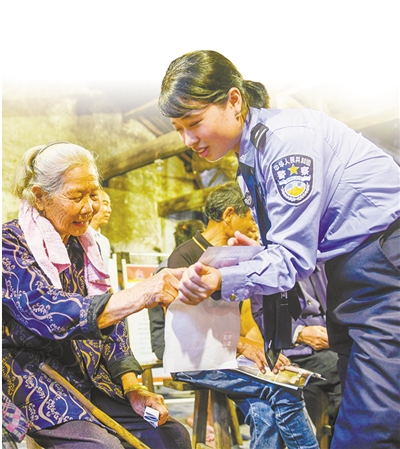 湖南省永州市道县乐福堂乡乐福堂村,民警向村民宣传防范非法集资有关知识。 |