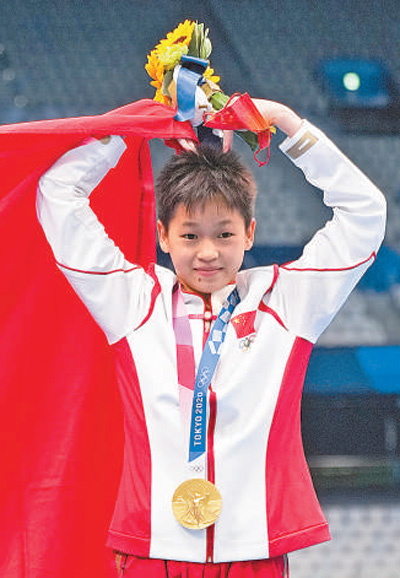 在跳水赛场,中国代表团最年轻的选手、14岁的全红婵首次参加奥运会,就在女子十米台决赛第二跳、第四跳和第五跳均获得满分,以466.20分的总成绩拿到女子十米台历史最高分,获得冠军。另一位中国队选手陈芋汐以425.40分获得银牌。中国跳水队在东京奥运会已收获6金4银。
