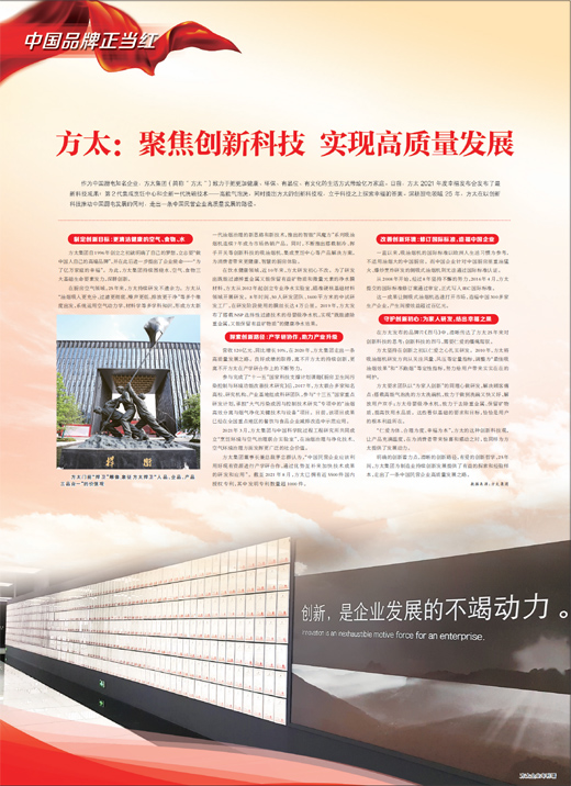 2021年3月,方太集团与中国科学院过程工程研究所共同成立“烹饪环境与空气治理联合实验室”,在油烟治理与净化技术、空气环境治理方面发挥更广泛的社会价值。