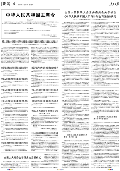全国人民代表大会常务委员会关于修改《中华人民共和国人口与计划生育法》的决定