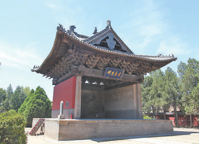 从现存文献看,山西芮城县东岳庙金泰和三年(1203年)碑刻《东岳庙新修露台记》就有记载,如“唯有露台一所,累(垒)土为之”,“衍循旧贯,创用砖石增大其基”等等。遗存的实例,有山西晋祠的金人台和河南登封中岳庙的露台。晋祠金人台是方形基台,通体由砖石铺设,不设顶盖,四周砖砌花栏围挡,前后设台阶,距圣母殿50余米。根据露台的位置、形制以及献殿的创建时间推测,晋祠金人台最早与正殿在同一时间创建。