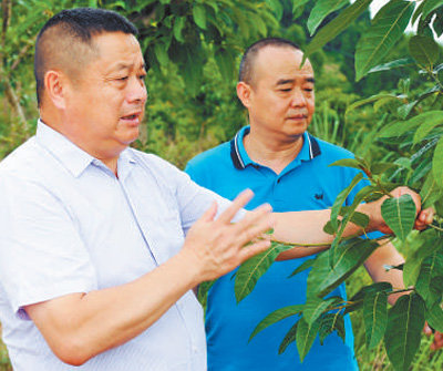 蒋乙嘉(左)向村民讲解黄桷树的管护。 |