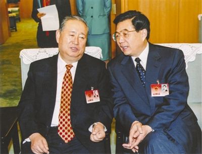 2002年3月,九届全国人大五次会议期间,胡锦涛同志与姜春云同志交谈。 |