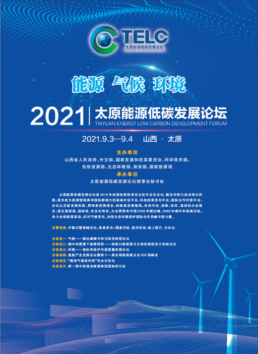 太原能源低碳发展论坛是2016年经国务院批准设立的专业化论坛,截至目前已成功举办四届,逐步成为能源领域具有国际影响力的高端对话平台、科技成果发布平台、国际合作对接平台。论坛立足新发展阶段,贯彻新发展理念,构建新发展格局,坚持开拓、创新、务实、高效的办会理念,强化国家级、国际性、专业化特色,为全面落实中国2030年碳达峰、2060年碳中和战略目标,助力全球能源革命,应对气候变化,加强生态环境保护国际合作贡献中国力量。