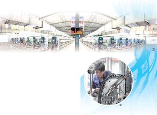 图①:达利丝绸(浙江)有限公司数字化生产车间。 |