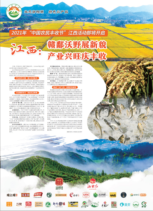 促进脱贫攻坚同乡村振兴有效衔接,开创新局面。江西是全国著名的革命老区,也是全国脱贫攻坚的重要战场,“十三五”时期,全省25个贫困县全部摘帽。“中国农民丰收节”江西活动将充分展示江西省脱贫攻坚取得的优异成绩和重大成果,推进巩固拓展脱贫攻坚成果同乡村振兴有效衔接,推动江西省农业全面升级、农村全面进步、农民全面发展,加快实现农业农村现代化。