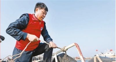 图为苗志刚在做出海前的准备工作。 |