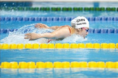 9月23日,张雨霏在女子200米蝶泳比赛中。 |