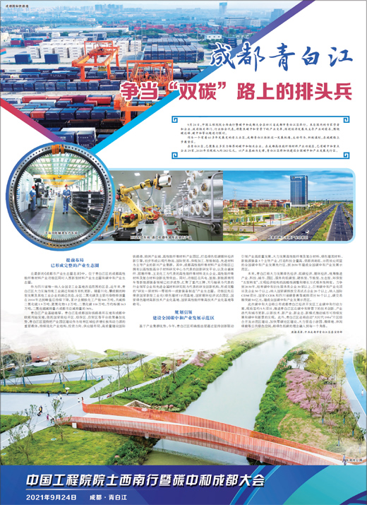 在最新的《成都市产业生态圈名录》中, 位于青白江区的成都高性能纤维材料产业功能区同时入围新型材料产业生态圈和碳中和产业生态圈。