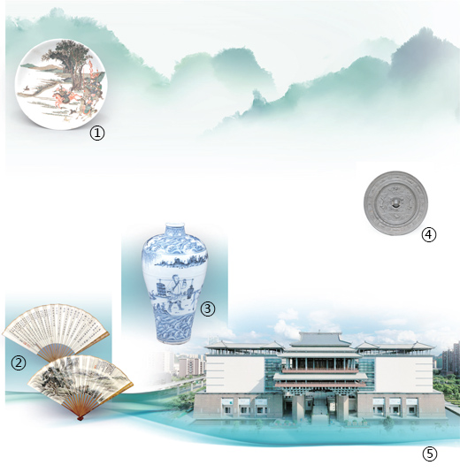 明青花高士行旅图(踏春图)梅瓶(图③),1972年出土于桂林市东郊明代靖江安肃王朱经扶夫妇合葬墓。经考证,这是明代宣德晚期到正统时期的产品。它造型规整,纹饰精美,堪称明代早期青花瓷器的精品,也是桂林博物馆的镇馆之宝。
