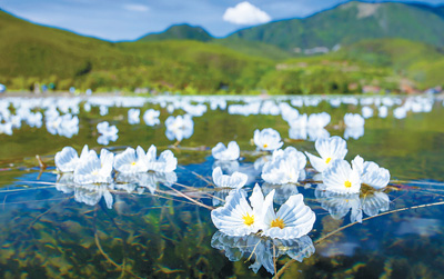 近年来,云南省丽江市宁蒗彝族自治县积极推进生物多样性保护工作,不断提升治理水平,采取多项措施,认真抓好高原湖泊保护工作。目前,泸沽湖水质稳定保持在国家地表水Ⅰ类标准,为海菜花等水生植物的生长提供了条件。