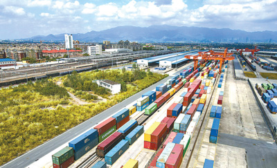 10月9日,满载着汽车零配件、电器、服装等物资的中欧班列从浙江省金华市鸣笛启程,驶往匈牙利布达佩斯。