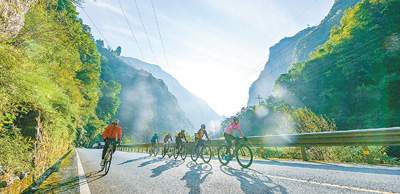 10月24日,2021巴桃园杯自行车公开赛在湖北神农架落幕。赛事为期3天,第一赛段林木繁盛,第二赛段云海翻腾,参赛车手和车友在骑行中领略神农架的人文和自然风貌。图为24日参赛车手骑行在山林间。