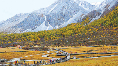 日前,四川省甘孜藏族自治州稻城亚丁风景区,层林尽染,五彩斑斓,吸引不少游客前往观赏。近年来,稻城县实施“山植树、路种花、河变湖(湿地)”工程,筑牢高原森林生态屏障。