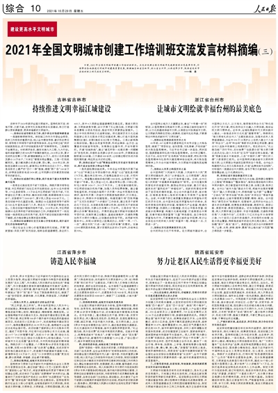 2021年全国文明城市创建工作培训班交流发言材料摘编(三)(建设更高水平文明城市)