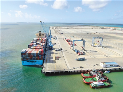 近日,位于肯尼亚曼达湾的拉穆港1—3号泊位加快建设和运营进度。该项目由中国交通建设股份有限公司承建,主体施工计划于12月完成。图为1号泊位作业现场。