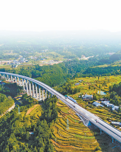 10月13日,穿越四川巴中通江县的镇广高速公路,宛如一条美丽的丝带。 |