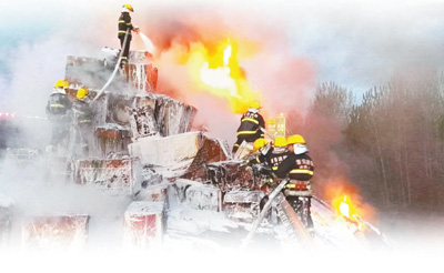 1000立方米罐体周围,仍在熊熊燃烧。火焰炙热,烤得人睁不开眼。浓烟弥漫呛鼻,令人窒息。突然,“轰”的一声巨响,又一辆槽车飞上天,碎片砸着管道,接口泄漏,气体“滋滋”作响,瞬间变成喷射状火焰,让人心惊肉跳。褚夫宽已忘记害怕,只有一个念头:快关阀!