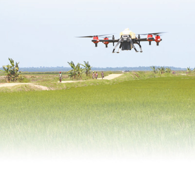 在乌干达卡隆古区卢卡亚镇中亿农业园,一架无人机正在进行喷洒农药作业。 |