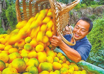陕西省汉中市城固县柑橘喜获丰收。图为农民正在装运。 |