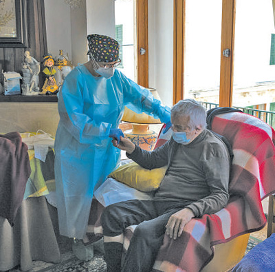西班牙马略卡岛一名护士为附近社区的老年人上门接种新冠疫苗。 |