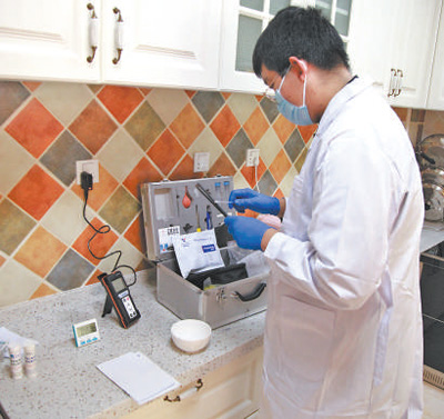 马梓育进行食品安全快检。 |