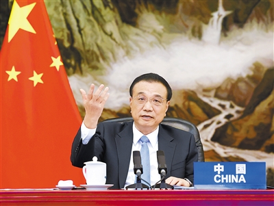 李克强表示,面对疫情挑战,要加强疫苗和药物研发等合作,共同完善全球公共卫生治理体系。各国疫后复苏要努力实现谋发展与促转型相互促进。中国作为世界上最大的发展中国家,要在现代化进程中实现低碳发展、绿色转型需要付出艰苦卓绝的努力。要秉持开放包容、合作共赢精神,坚持融合联动发展,加速构建人员往来“快捷通道”和货物流通“绿色通道”网络,维护全球产业链供应链稳定畅通。