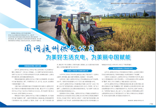 国网杭州供电公司作为提供能源电力公共服务的重要枢纽平台,以数字化改革推动共同富裕体制机制创新,聚焦高品质供电服务,深入推进城乡电网同规同网同服务、优化营商环境等系列举措,为美好生活充电,为美丽中国赋能。