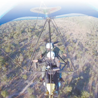 在津巴布韦的马纳波尔斯国家公园,中国和当地反盗猎志愿者驾驶动力三角翼进行空中巡护。 |