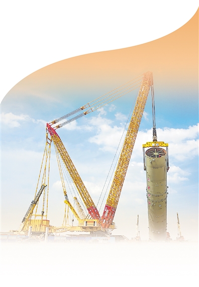 徐工4000吨级履带式起重机正在吊起煤炭液化反应器。 |