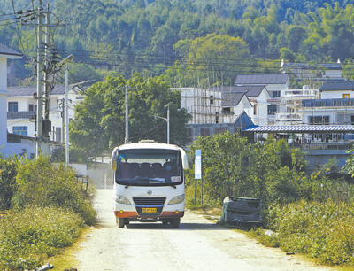 安徽省巢湖市以“外通内联,通村畅乡”加速城乡融合,农村公路联网成环,实现了“村村通公交”。图为公交车行驶在巢湖市散兵镇小响路上。 |