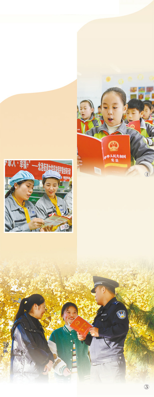 宪法进农村、宪法进社区、宪法进校园、宪法进机关、宪法进企业、宪法进军营、宪法进网络……近年来,各地各部门围绕宪法法律宣传,策划组织了一系列特色鲜明的群众性法治文化活动,让宪法法律元素融入人民群众日常生活。宪法法律宣传点成为“网红打卡地”、全国各高铁列车和车站播放宪法宣传片,如今公共场所设置的宪法宣传元素越来越多。“截至目前,全国共设立法治文化主题公园3500多个、广场1.2万多个、长廊3.4万多个,人民群众在休闲娱乐中接受宪法法律的熏陶。”全国普法办相关负责人介绍。