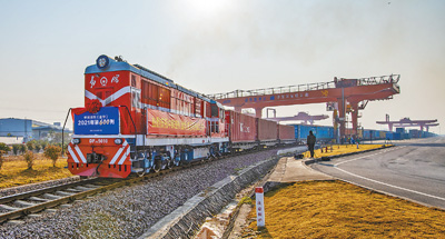12月7日,一列满载纺织品、汽车配件等商品的中欧班列从浙江省金华南站起程,驶往乌兹别克斯坦。