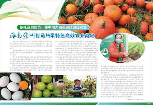 优结构,规模化助力特色高效农业快速发展。儋州市将农业规模化作为实现农业产业化的重要抓手。在推进农业规模化发展中,儋州因地制宜,着力调减低效产业,加大政策引导、科技支撑和产业扶持力度,发挥大企业大项目带动作用,健全利益连接机制,大力发展特色高效农业。