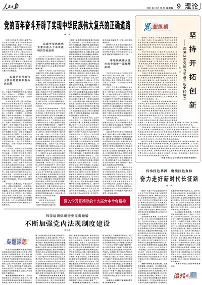 党的百年奋斗开辟了实现中华民族伟大复兴的正确道路(深入学习贯彻党的十九届六中全会精神)
