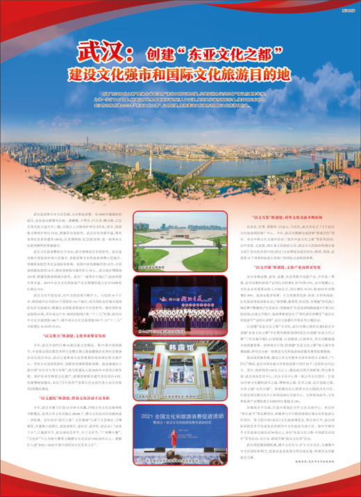 以创建“东亚文化之都”为目标,武汉市精心组织实施《武汉市创建“东亚文化之都”中长期发展规划》和《武汉市创建“东亚文化之都”三年实施方案》,以创促建、以创提质、以创争优,用文化赋能城市高质量发展。坚持高位引领,把创建“东亚文化之都”纳入城市发展战略,研究出台新一轮推进文化和旅游高质量发展的政策措施。