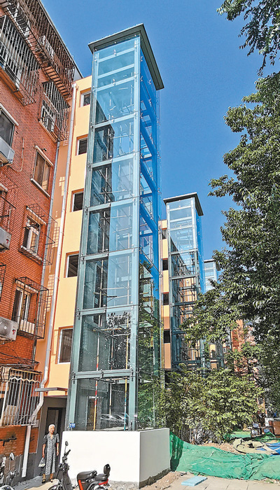 北京市海淀区北太平庄街道一居民楼完成旧楼改造加装电梯惠民工程主体施工。 |