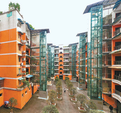 重庆市垫江县桂溪街道松林社区桂冠花园小区,老楼加装电梯后居民出入更方便。 |