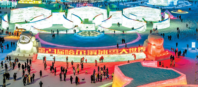 12月25日,第二十三届哈尔滨冰雪大世界试营业开园迎客。