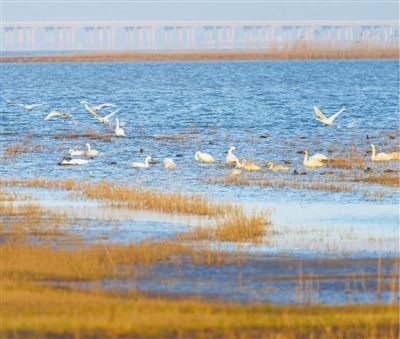 江苏南京溧水区推进长江流域石臼湖生态修复工作,越来越多候鸟飞来越冬。 |