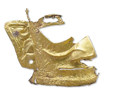 图为三星堆遗址5号坑出土的半张黄金面具。 |