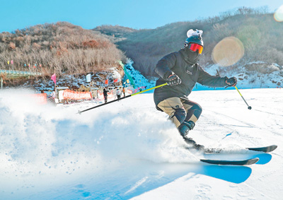 1月3日,在河北省秦皇岛市海港区老君顶景区,一名滑雪爱好者在雪场飞驰而过,激起一片雪花。随着北京冬奥会、冬残奥会的筹办,“带动三亿人参与冰雪运动”的推进,越来越多人走上冰面、雪场,赏冰乐雪,尽享冬季体育运动之趣。