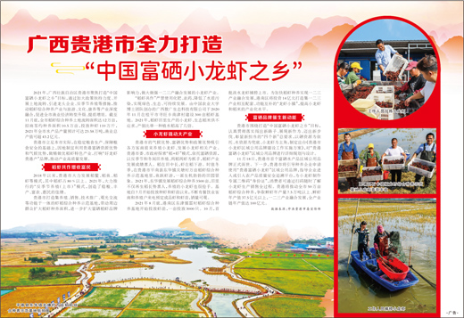 贵港市立足本市实际,在稳定粮食生产、保障粮食安全的基础上,因地制宜利用贵港富硒资源优势和气候优势,做精做优稻虾特色产业,打响“好龙虾 贵港产”品牌,推动产业高质量发展。