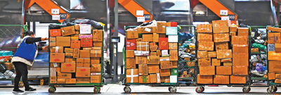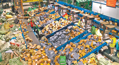 中国邮政集团有限公司湖南省衡阳邮区中心,工作人员在分拣快递包裹。 |