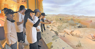 2021年7月14日,来自也门、埃及等20多个国家的61名留学生在宁夏灵武白芨滩国家级自然保护区内参观中国防沙治沙展览馆。 |