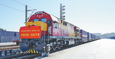 1月10日, 采用时速120公里专用铁路货车编组的“澜湄快线”首趟列车满载云南鲜花、蔬菜等产品,从昆明王家营西站发出,预计26小时后就可抵达老挝万象。