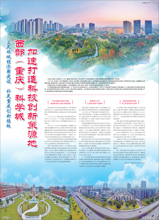 下一步,西部(重庆)科学城将发展重心转向新型储能、种质资源创制、检验检测、标准认证等新领域,加快形成规模5000亿元、有全国影响力的主导产业集群,同时还将联合西部(成都)科学城等共建川渝合作产业示范区,打造世界级产业集群。