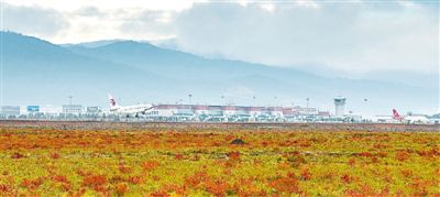 秋季的迪庆香格里拉机场鲜花簇拥。 |