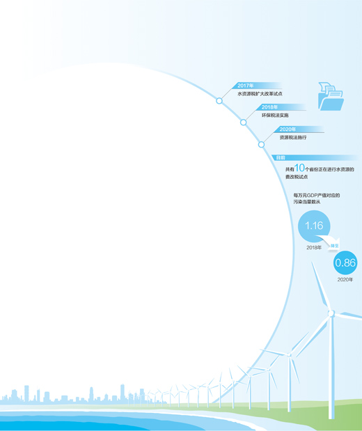 国家税务总局发布的数据显示:环保税法实施以来,每万元GDP产值对应的污染当量数从2018年的1.16下降到2020年的0.86。2020年,北京等10个水资源税试点省份取用地下水水量占征税范围内总用水量的比例为33.5%,比改革前的2016年下降8个百分点。“以环保税为主体的绿色税收体系带来了明显的节能减排效应。尤其是相关减税优惠政策,有效引导企业从被动减排向主动减排转变,激发了企业绿色发展的积极性。”国家税务总局财产和行为税司司长练奇峰说。