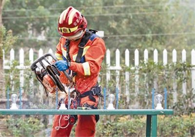 消防员在进行高空心理训练。
